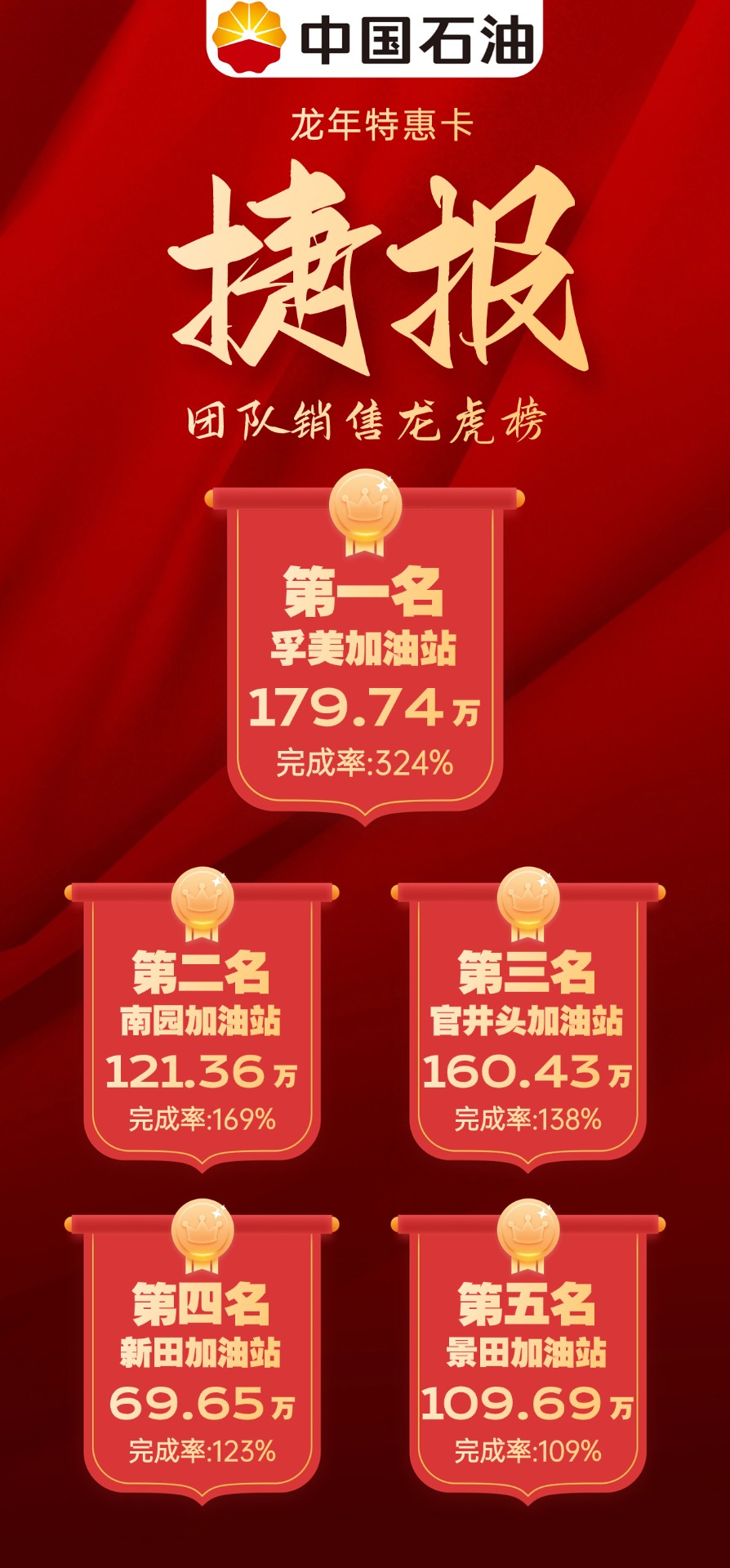 1月1日至31日,零售事業(yè)部開展了油非互動龍年特惠卡銷售比武活動,各油站高度重視此次銷售比武活動,全體員工銷售熱情高漲。在各油站員工的積極努力下,比武活動共完成了1332.77萬元的銷售業(yè)績。其中,孚美加油站以179.74萬元的銷售業(yè)績獲得第一名。
