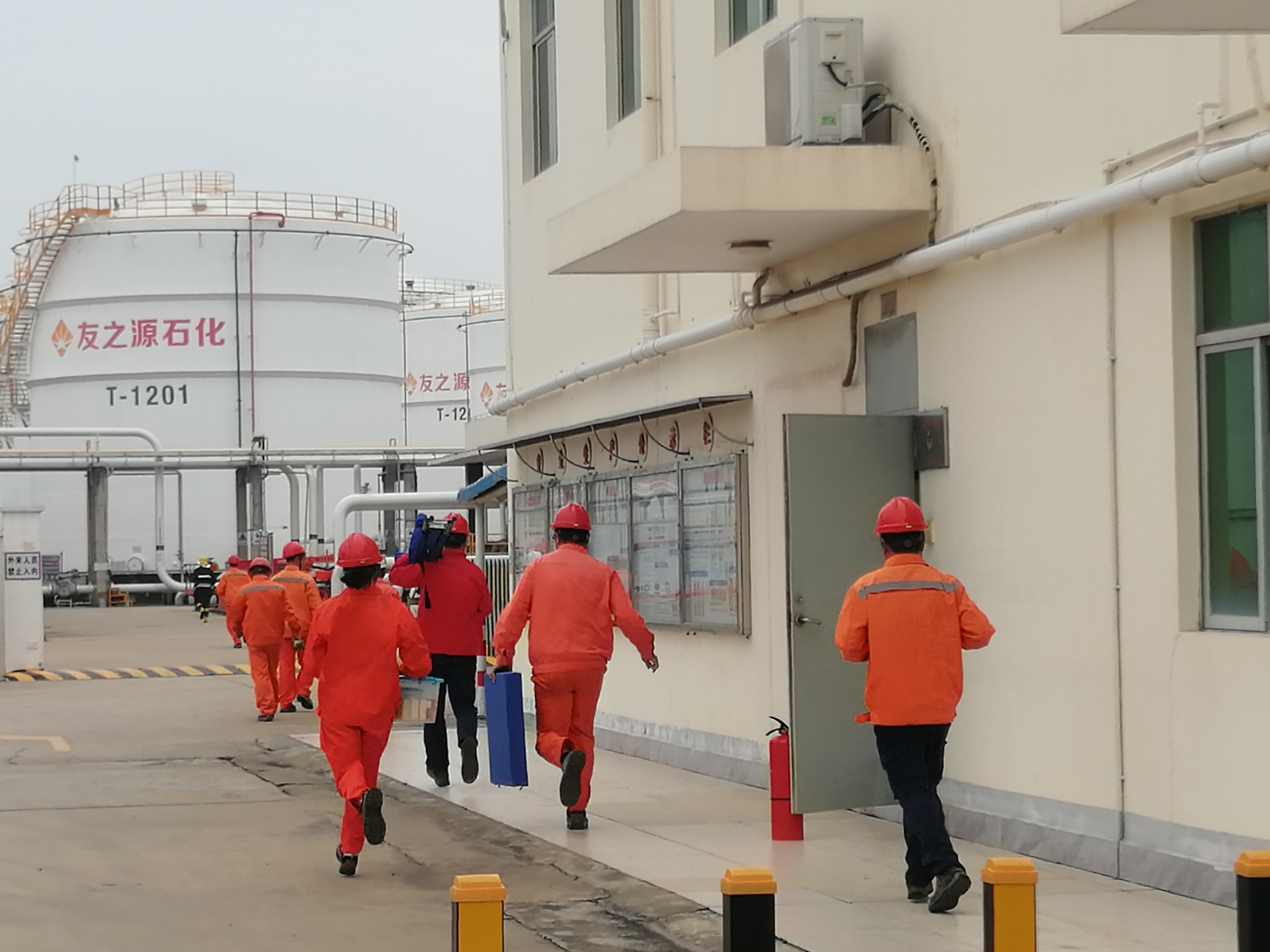 3月28日下午16時(shí),興盛油庫(kù)組織全體員工模擬進(jìn)行T1108罐汽油泄漏、火災(zāi)事故應(yīng)急演練。